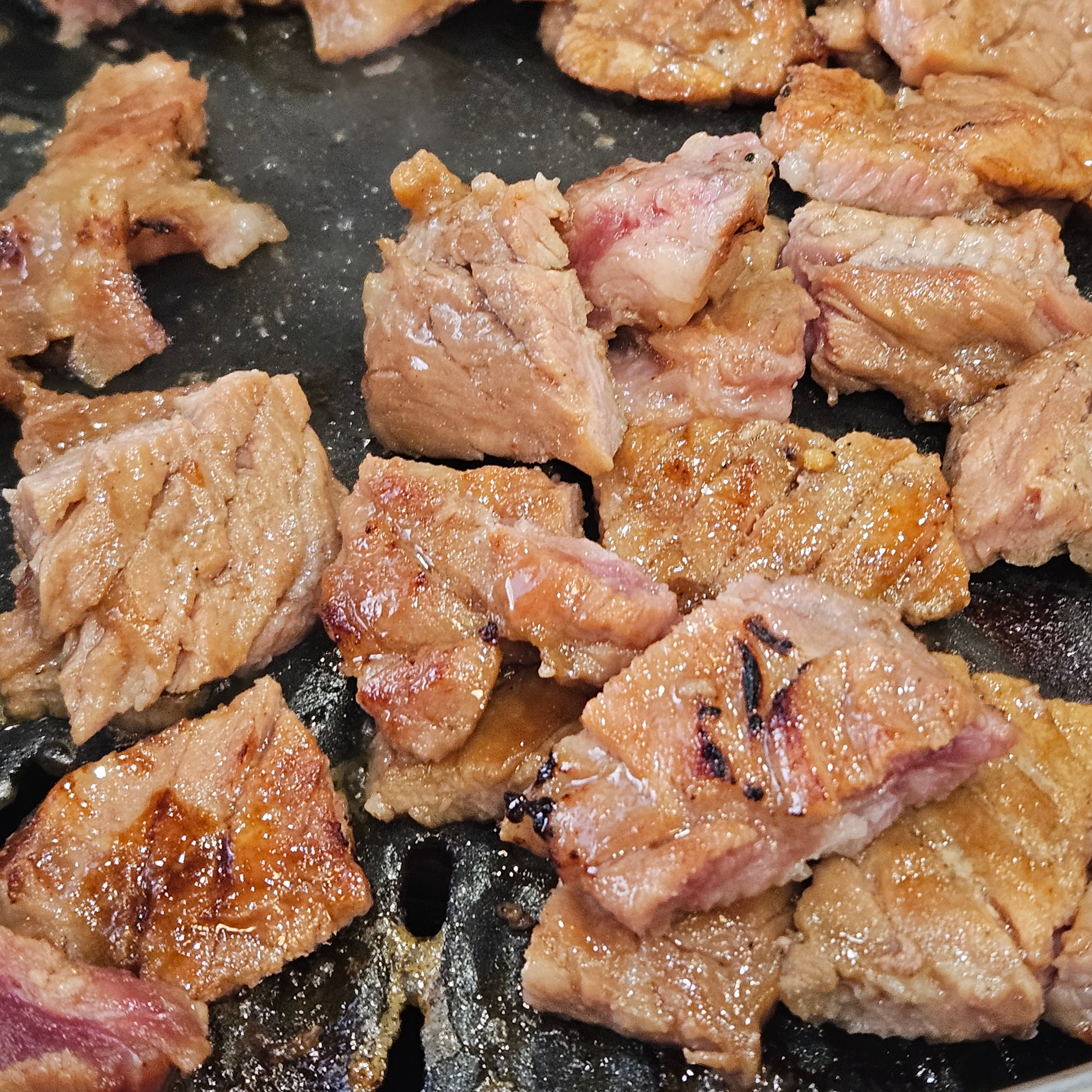 직원분이 고기를 구워주시니 우리는 중간중간에 직원분이 없으실 때 고기 타지 않게 잘 뒤집기만 하면 된다.
